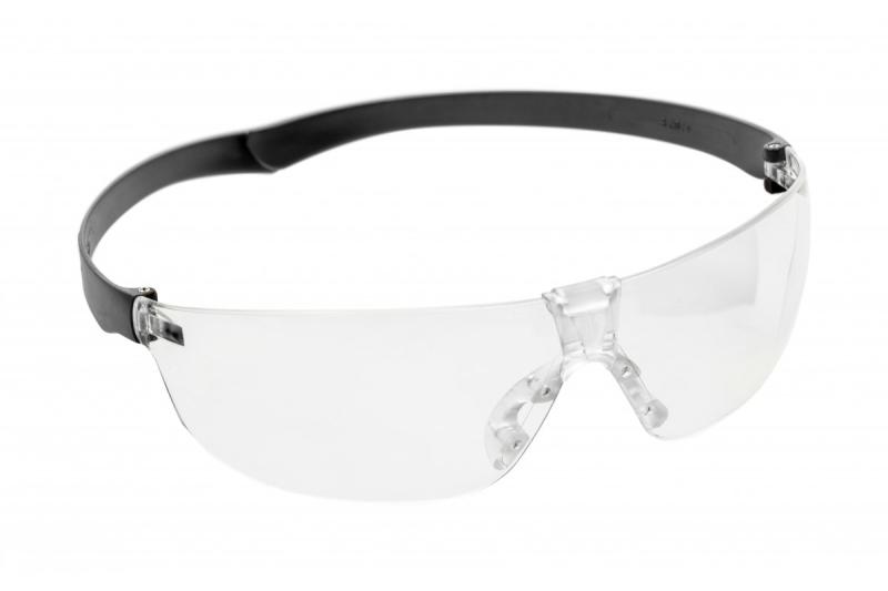 AUGAM safety glasses offer advanced eye protection thanks to their innovative and modern design. The frames, lenses and temples of the glasses are made of polycarbonate (PC), a material known for its strength and impact resistance. The soft rubber nose pad is flexible and adopts to the wearer's face. The lenses are also equipped with an anti-scratch coating, which increases their resistance to scratches. Temples without bent tips make the glasses possible to be used under a helmet.