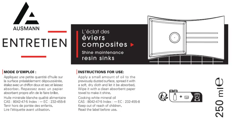 Ausmann onderhoud schoonmaakmiddel olie voor bio composiet resin fiber spoelbak 1208966925