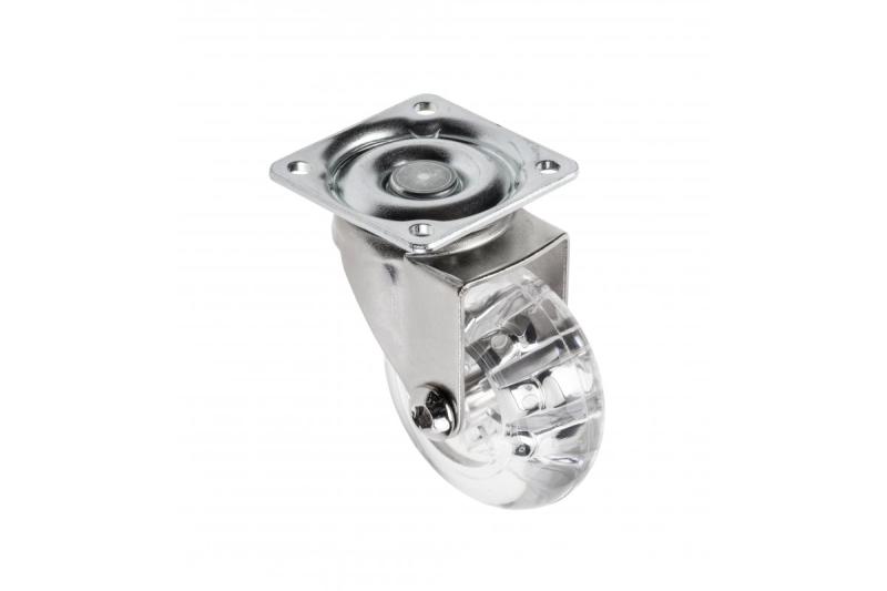 Roll BRAZIL 50 without brake made of steel, polycarbonate (PC) and polyurethane (PU). Available in two color variants with a diameter of 50 mm. BRAZIL rolls are a practical solution for apartments and offices where there is mobile furniture such as cabinets and RTV tables, under-desk cabinets with drawers. They will also be used in sliding boards, industrial shelves, tables, poufs. Rollers prevent scratches on the floor, do not damage the ground, dampen vibrations, and also allow quick movement of furniture. The wheels can withstand a load of up to 40 kg. The rotating roller handle allows movement in many directions, allows for smooth rotation of 360 degrees under load.