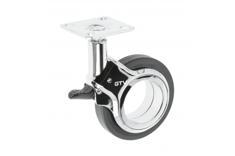 Furniture roller GTV GIRA, H=107 mm, dia75 mm, with brake, plastic + steel, black + chrome