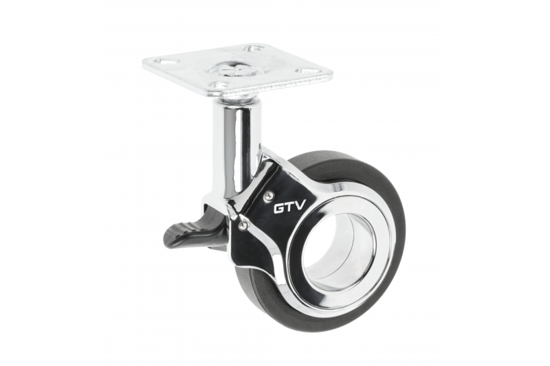Furniture roller GTV GIRA, H=94 mm, dia60 mm, braked, plastic + steel, black + chrome