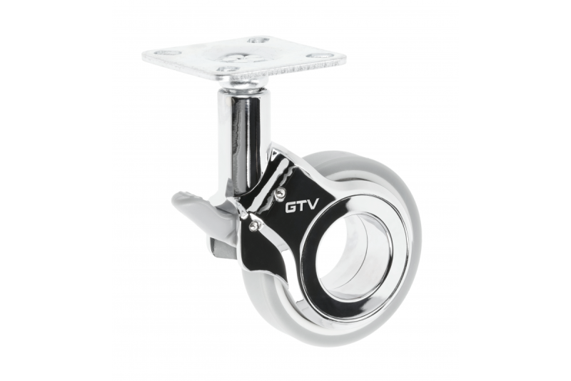 Furniture roller GTV GIRA, H=94 mm, dia60 mm, braked, plastic + steel, chrome plated + grey matt