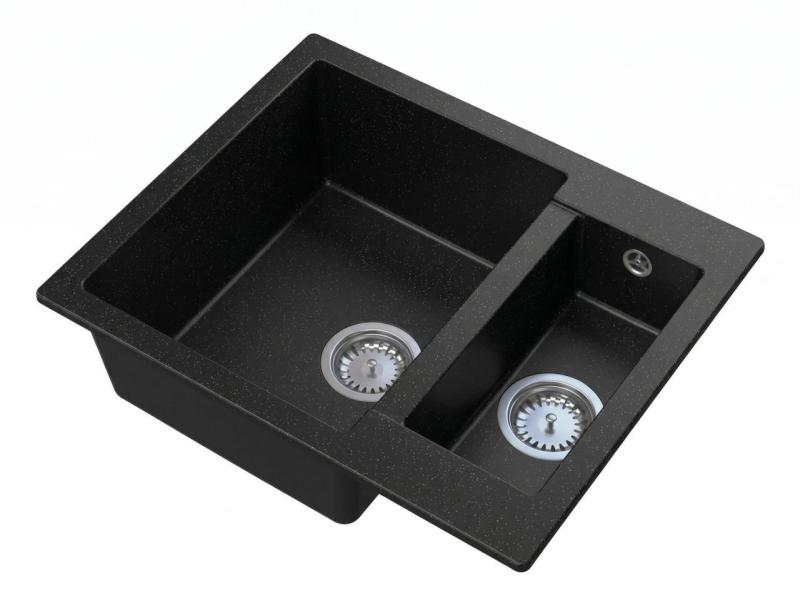 Graniteland Adda Granieten zwart arduin hardsteen look 1.5 Spoelbak Opbouw 600x495mm met RVS Plug 1208970619