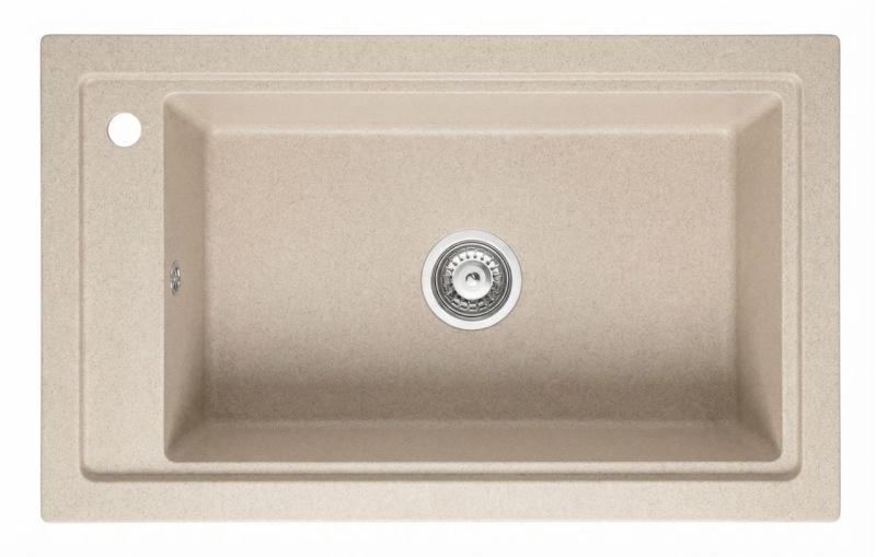 Graniteland Magra Granieten Beige Zand Spoelbak opbouw 686 x 427 mm met kraangatbank en RVS Plug 1208970617