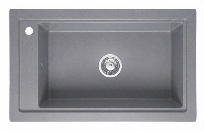 Graniteland Magra Granieten Grijs Spoelbak opbouw 686 x 427 mm met kraangatbank en RVS Plug 1208970618