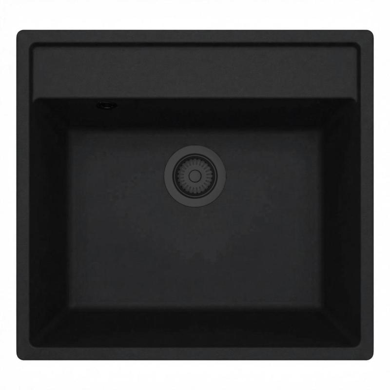 GraniteMy Bremen granieten spoelbak 53x50 cm zwart opbouw onderbouw en vlakinbouw met kraangatbank 1208952256