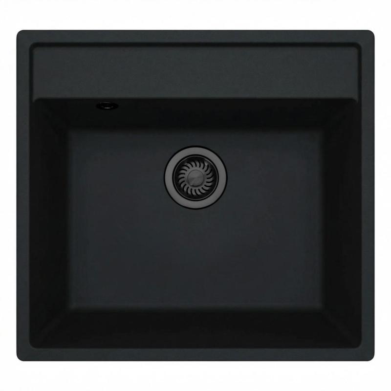 GraniteMy Bremen Granieten Spoelbak 53x50 cm Zwart – Opbouw, Onderbouw en Vlakinbouw met Kraangatbank en Gun metal Plug 1208969971