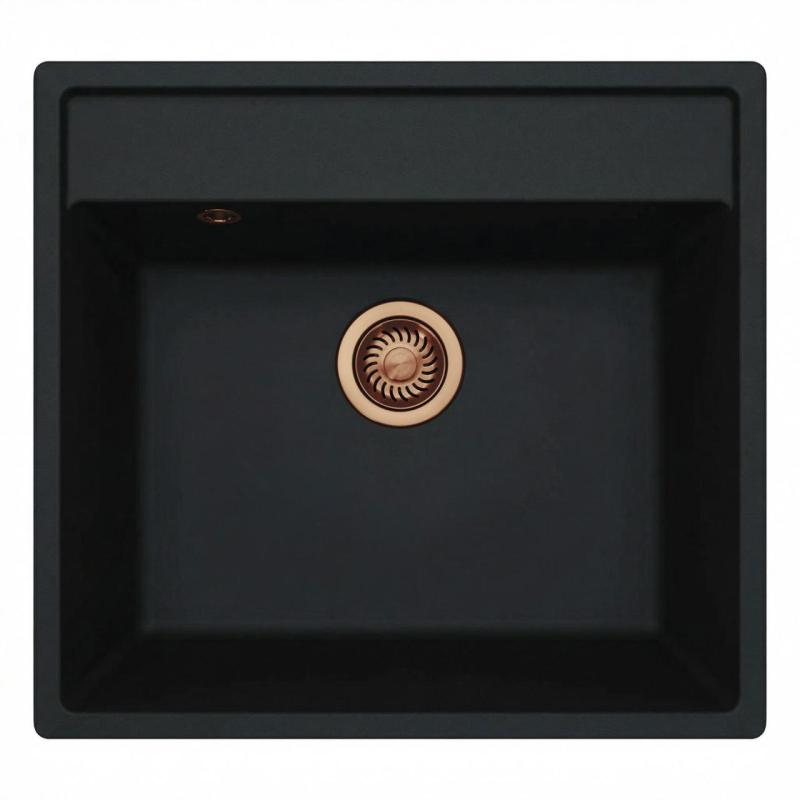 GraniteMy Bremen Granieten Spoelbak 53x50 cm Zwart – Opbouw, Onderbouw en Vlakinbouw met Kraangatbank en Koperen Plug 1208969970
