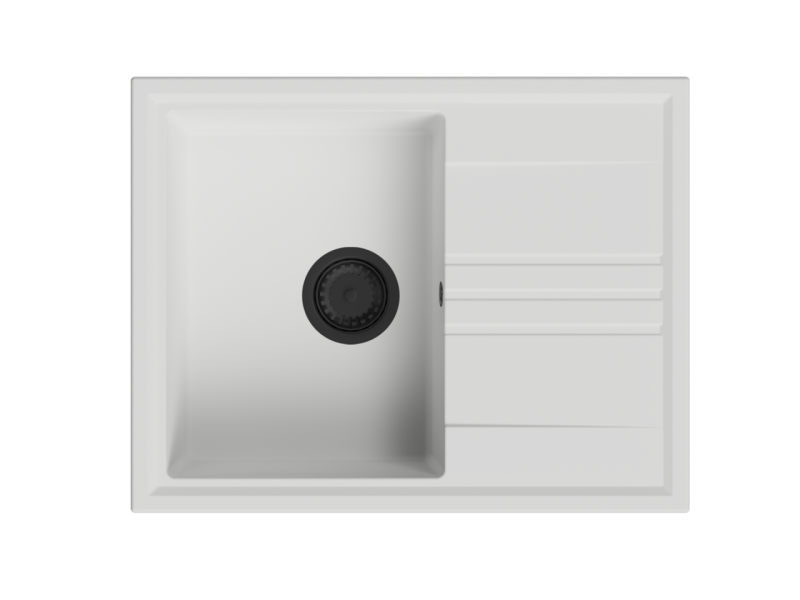 GraniteMy Vesi granieten opbouw witte spoelbak 64x50cm met afdruip omkeerbaar met zwart plug 1208967299