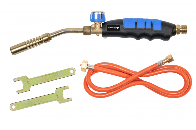 Professionele set voor gassolderen. De 2 kW soldeerbrander is uitgerust met een precieze vermogensregelaar zodat de soldeertemperatuur kan worden aangepast aan het type en de grootte van de elementen.