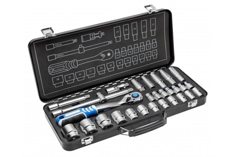 • Doppen 1/2": 8, 9, 10, 11, 12, 13, 14, 15, 16, 17, 18, 19, 21, 22, 24, 27, 30, 32, 36 mm