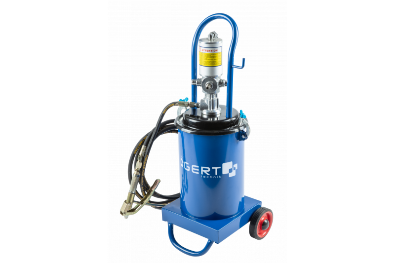 Pneumatische vetspuit voor ononderbroken en onder druk smeren van mechanische onderdelen. Bedoeld voor zware industrie, landbouw, bouw, evenals in de auto-industrie voor het onderhoud van industriële machines, maaidorsers, bouwmachines, of personenauto's, bestelwagens en vrachtwagens. Product uitsluitend ontworpen voor professioneel gebruik.
