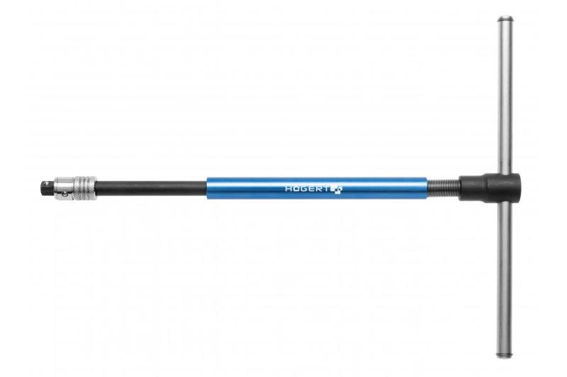 T-handvat met schuifadapter. Maakt het mogelijk om een groter koppel toe te passen op de socket, schroef of schroevendraaierbit. Geschikt voor gebruik in auto- en motorreparatiewerkplaatsen.