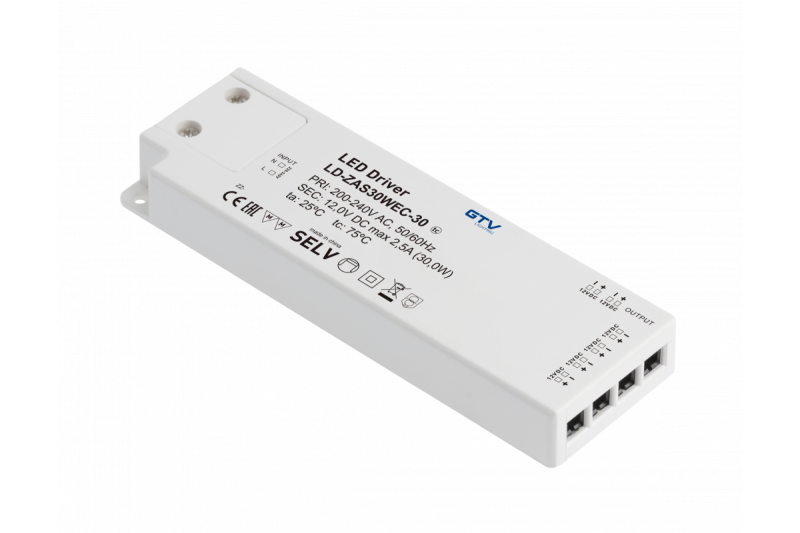 A LED driver is the heart of the whole system. It must be efficient and reliable. It is no different in case of EASY CLICK LED drivers. This is a highly specialized switched-mode LED driver with a pre-connected power cable and built-in miniAMP sockets. Depending on the LED driver power, the user has from 3 to 6 mini AMP sockets at his disposal. Easy Click LED driver from GTV meets the highest European standards. Thanks to the SLIM casing, it is easier to hide the LED driver in the spaces between the cabinets.
