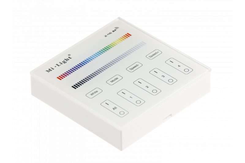 A touch panel is one of the two available control devices. The panel can be used to control 4 zones independent of each other. Many single controllers responsible for a single light point can be assigned to each zone.
