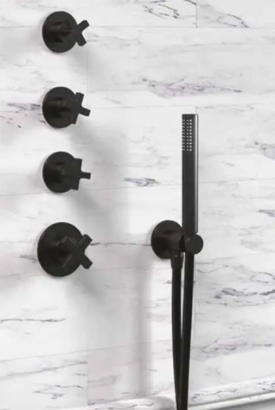 Waterevolution Cruz inbouw douchethermostaat met 3 stopkranen mat zwart 1208916562