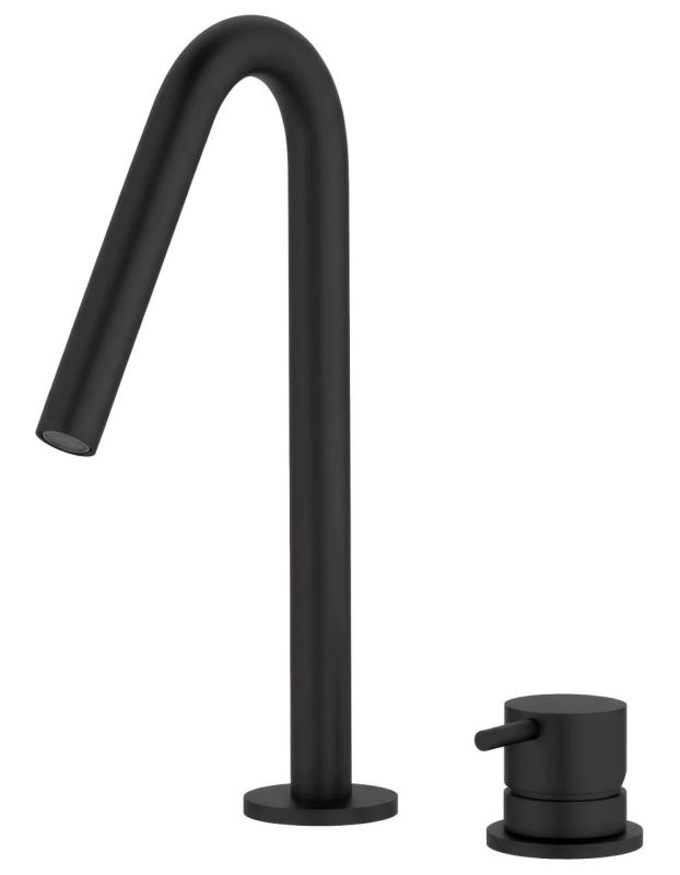 Waterevolution Flow 2-gats wastafelkraan mat zwart met kleine V 120mm uitloop T1121VPR