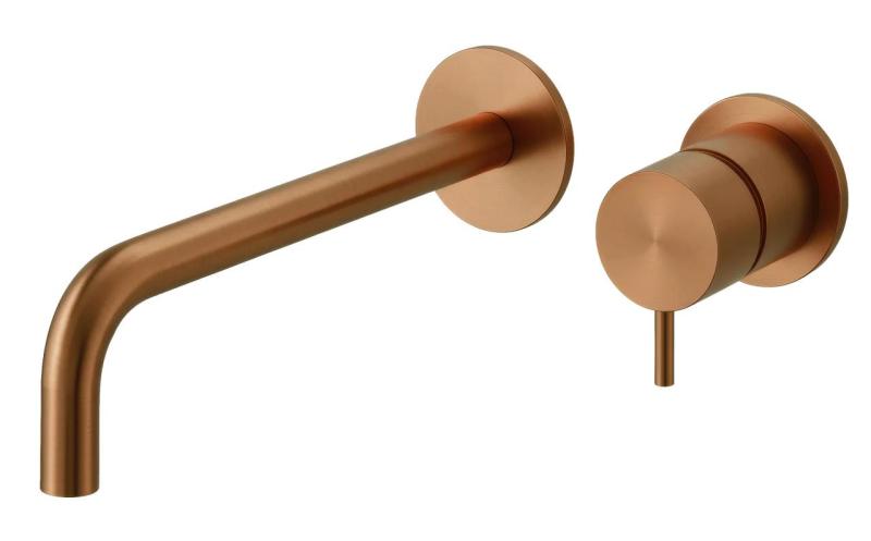 Waterevolution Flow Inbouw Wastafelkraan PVD Geborsteld Koper met uitloop 21 cm T116BCPE-21