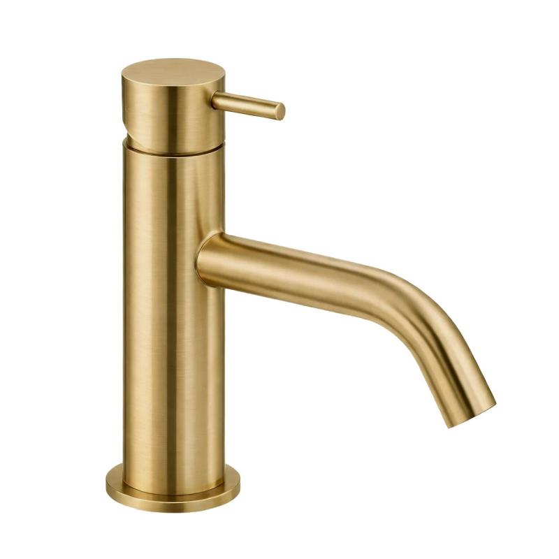 Waterevolution Flow lage wastafelkraan incl. click plug geborsteld messing T110LE